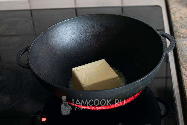 Масло (да, его так много) поставим растапливаться на слабом огне.