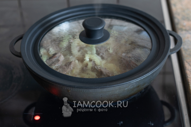 После этого убавим огонь на минимум, закроем казан крышкой и оставим на 1 час.
