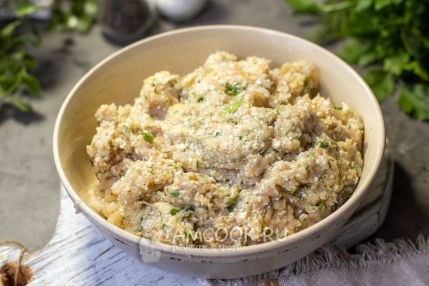Измельчите все ингредиенты в однородный фарш, посолите и поперчите по вкусу. Переложите в подходящую посуду.