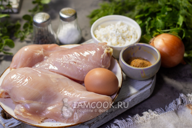 Соберите необходимые продукты. Творог возьмите не сухой, от 5% жирности и выше. Выбирайте свежий и натуральный творог, желательно пастообразный. Если будете готовить и детям, то исключите специи для котлет, достаточно будет добавить лишь лук, зелень и свежий чеснок. Можно также добавить сушеные травы или натуральные специи.