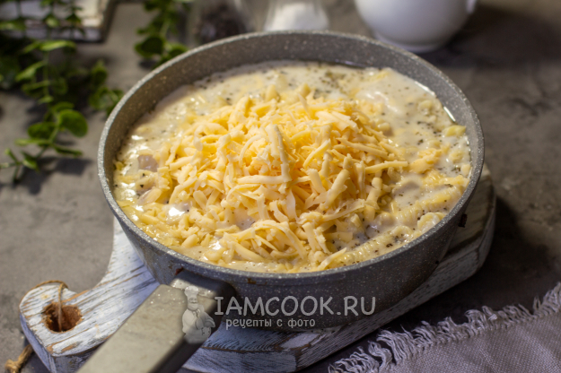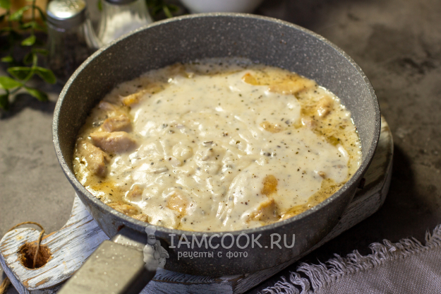 В сковороду, где готовится курица, влейте готовый соус "Бешамель".
