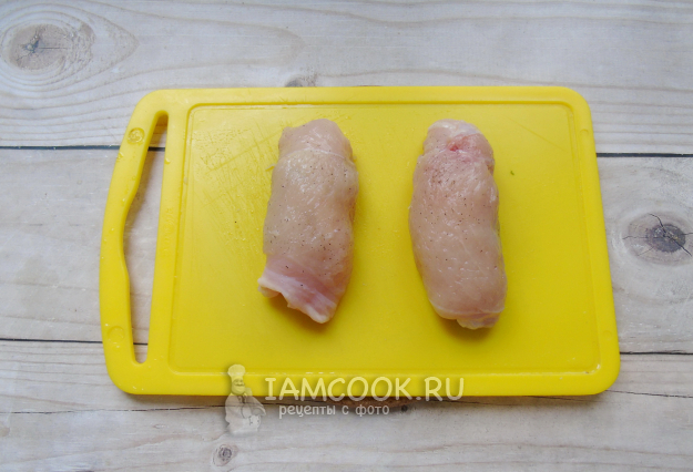 Посолите и поперчите курицу.