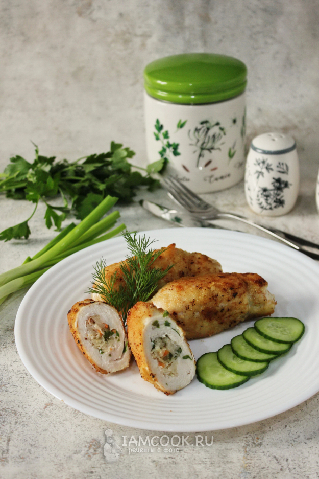 Сочные и необыкновенно вкусные куриные рулетики в панировке готовы.