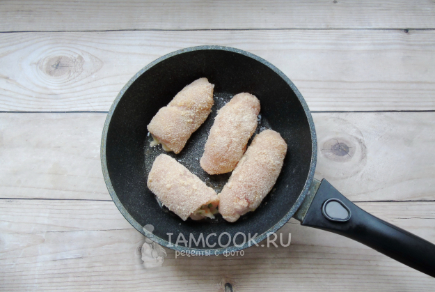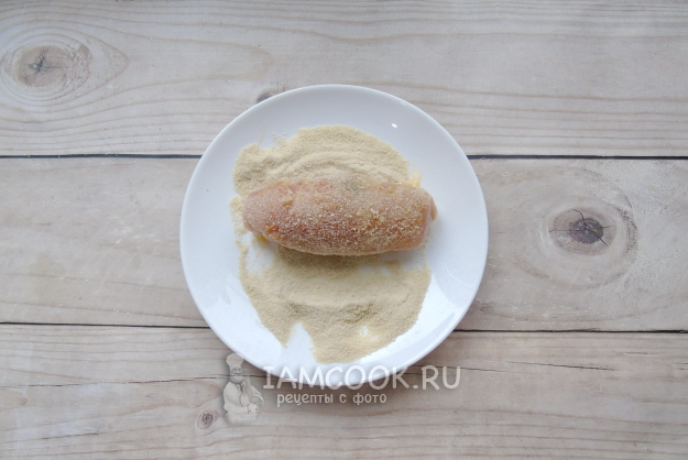 После обваляйте в панировочных сухарях.