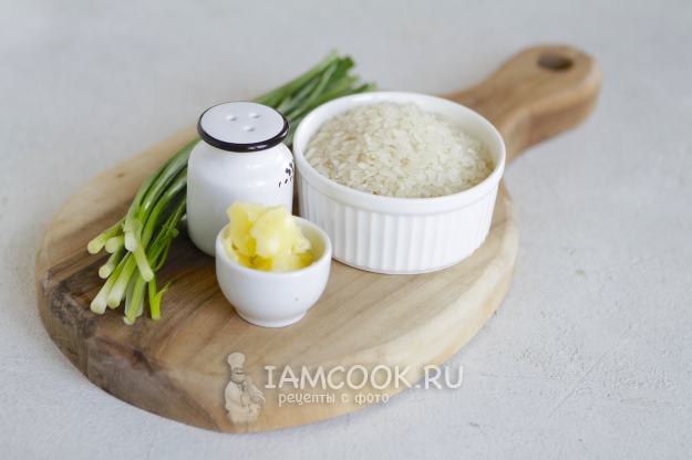 Давайте соберем все продукты по списку и приступим к приготовлению риса с жареным луком. Сорт риса не играет большой роли. Я готовила гарнир из сорта риса "Аланга". Этот сорт абсолютно неприхотливый в приготовлении. Количество воды всегда добавляю 1:2.