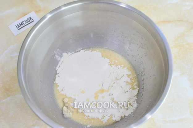 Муку просейте через сито и постепенно подсыпайте в чашу. Замешивайте тесто. В количестве муки ориентируйтесь по готовности теста.