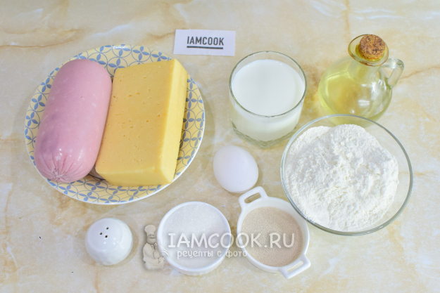 Чтобы приготовить жареные пирожки с ветчиной и сыром на сковороде, соберите необходимые ингредиенты. Ветчину и сыр можно взять любые на свой вкус.