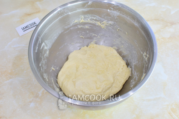 Готовое тесто будет мягким, пластичным и почти не липнет к рукам. Не забивайте его лишней мукой. Смажьте руки растительным маслом и помните тесто. Затем накройте чашу полотенцем и оставьте в теплом месте на 1 час, чтобы тесто подошло.