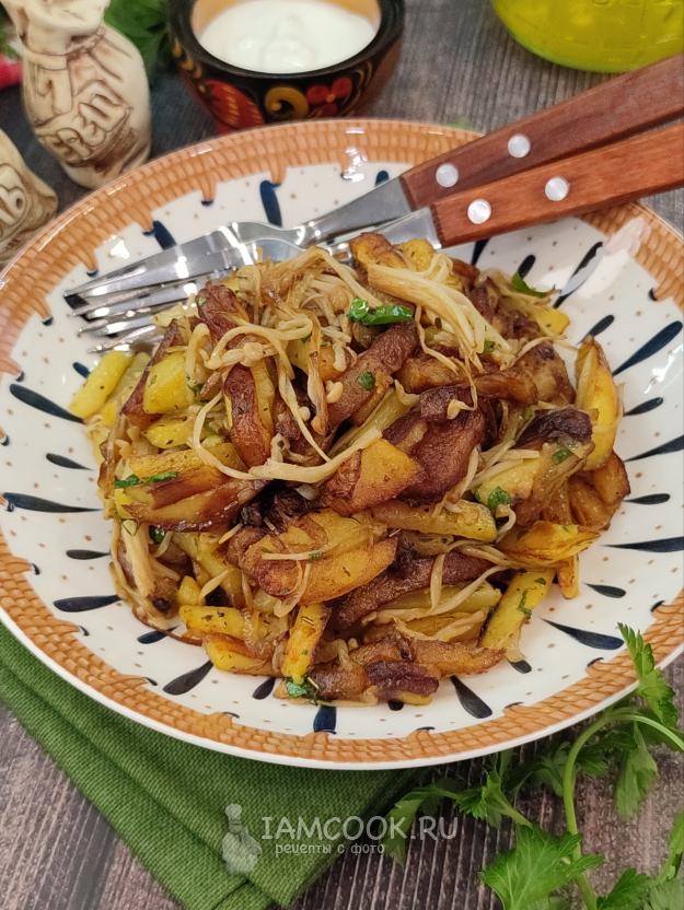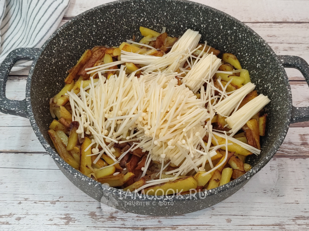 Подавайте грибы эноки с картошкой сразу, с пылу с жару! Очень вкусно будет со сметаной😋.