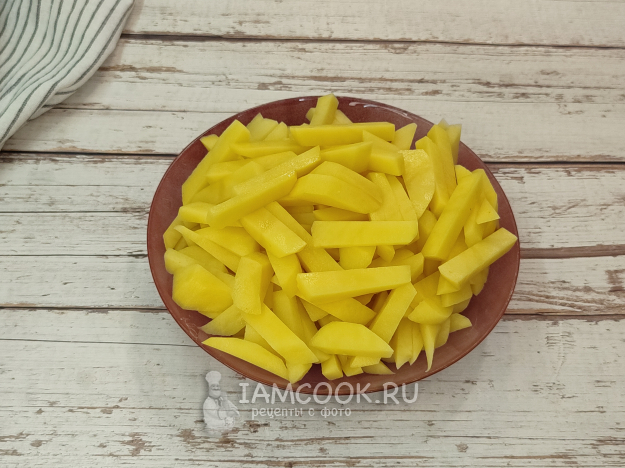 Картофель нарежьте так, как вам привычнее, я режу не слишком мелкой соломкой.