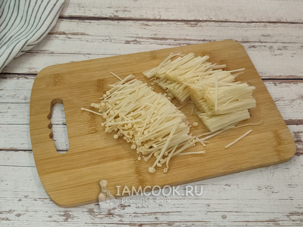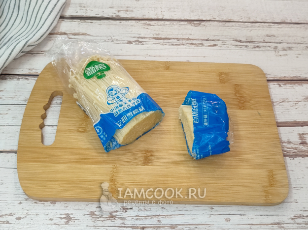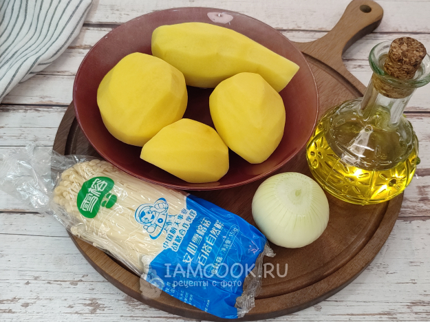 Соберите ингредиенты для приготовления грибов эноки с картошкой.