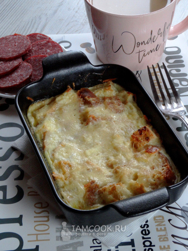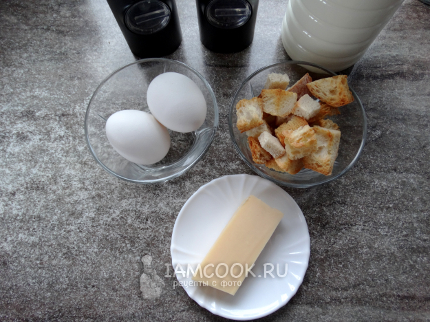 Запекать омлет с сухариками при температуре 180 градусов 12-15 минут или до стабилизации яиц.