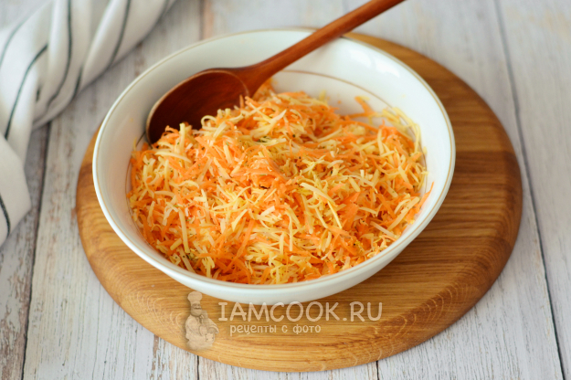 Тщательно перемешайте морковь с сыром, чесноком и травами.