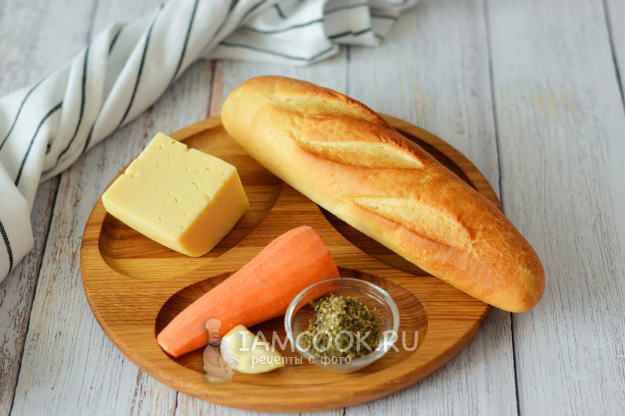 Вот тот небольшой набор продуктов, который понадобится для приготовления горячих бутербродов с морковью и сыром в духовке.