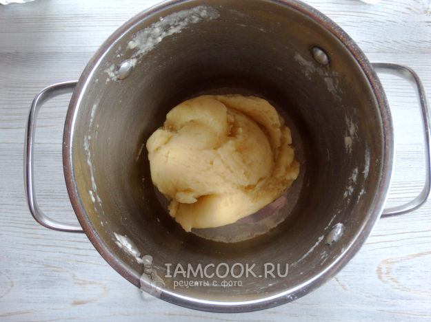 Когда тесто станет тёплым, вбить по одному яйцу, каждый раз хорошенько взбивая миксером или венчиком.