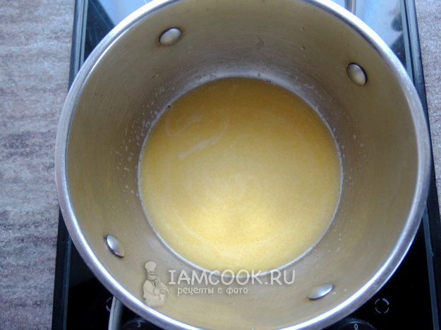 Поставить кастрюлю на плиту, масло должно полностью растаять.