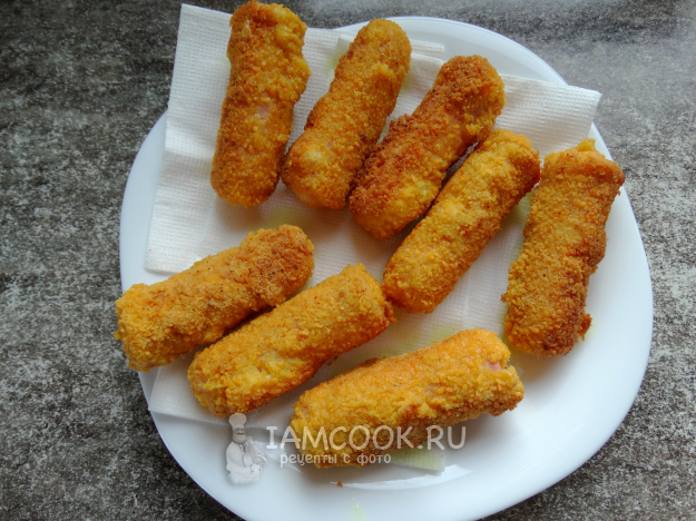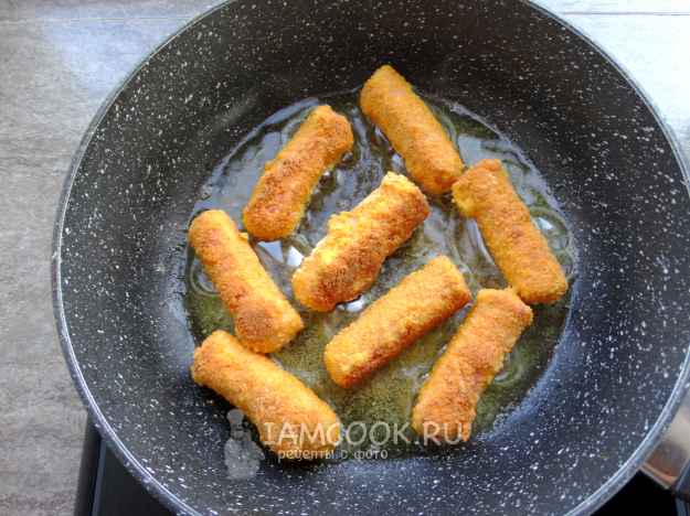 Сосиски в панировке на сковороде готовы.