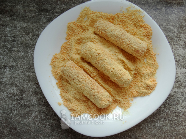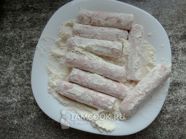 Обвалять сосиски в муке.