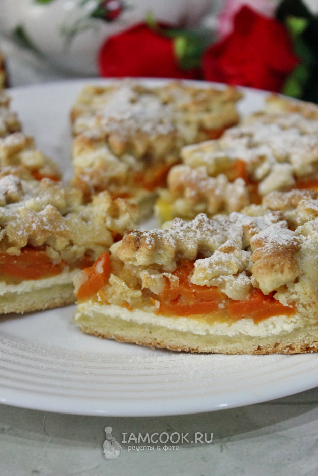 Песочный пирог с творогом, тыквой и яблоками готов. Остывший пирог нарежьте и подавайте к столу.