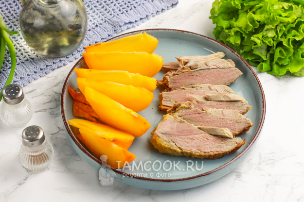 Продукты для приготовления салата с уткой и хурмой - перед вами!
