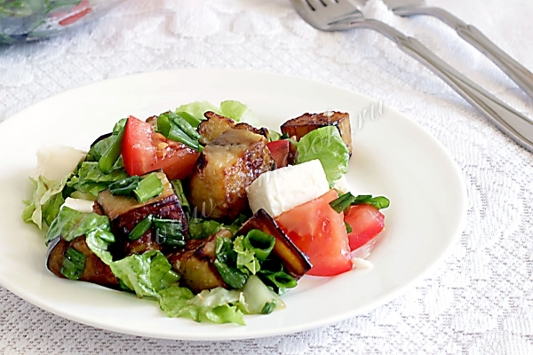 Существует множество вариантов салатов с баклажанами. Так как, они продаются у нас круглый год, то очень хочется придумывать все новые вкусные сочетания. Сыр Фета можно опустить и не использовать, но мне он очень нравится в салатах. Попробуйте этот вариант.