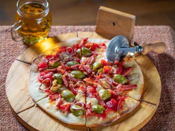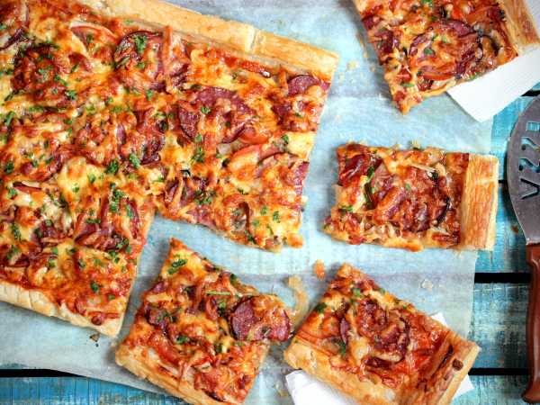 Смажьте пиццу кетчупом или любым другим томатным соусом.