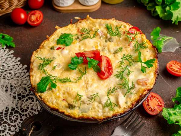 Подберите ингредиенты для приготовления пиццы из капусты на сковороде.