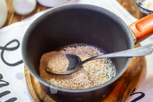 В небольшой ковш всыпьте овсяные и пшеничные отруби, добавьте соль и перемешайте.