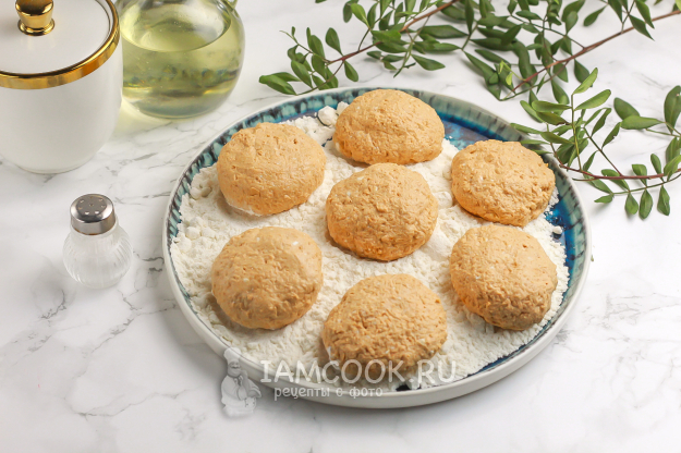 Оставшуюся муку высыпьте на тарелку или блюдце. Смочите руки в воде и разделите творожную массу на равные части. Скатайте их в руках в колобки, округлые лепешки или сформируйте на рабочей поверхности с помощью ножа. С обеих сторон запанируйте заготовки в муке.