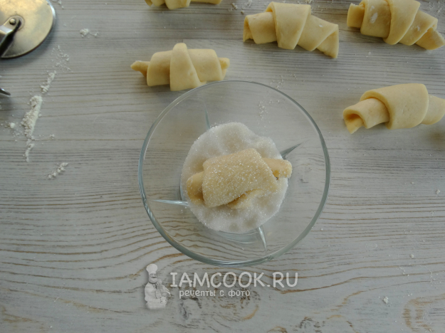 Можно обвалять рогалики в сахаре, но это по желанию.
