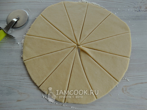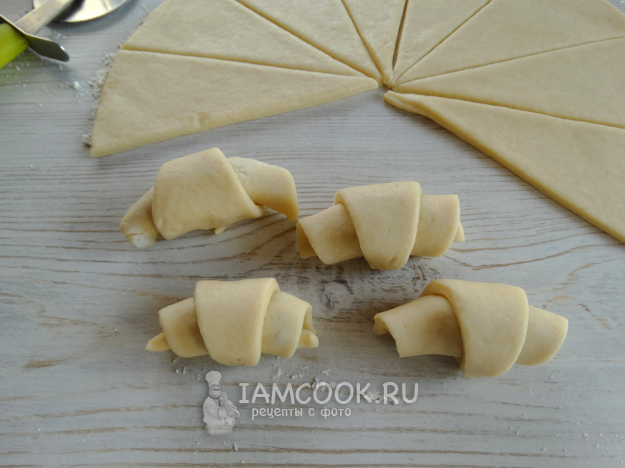 Свернуть рогалики от большого края к меньшему.