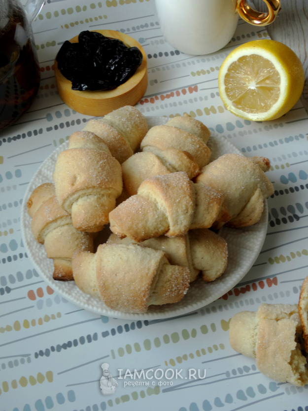 Выпекать рогалики с черносливом до румяного состояния при температуре 180 градусов.