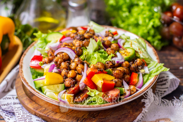 Добавьте в салатник запеченный нут и можно подавать - салат с запеченным нутом готов!