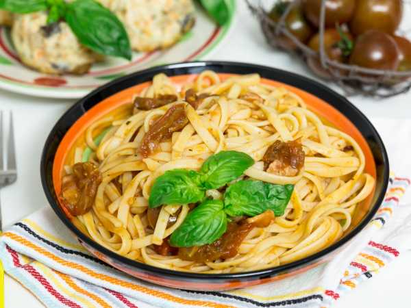 Приготовьте соус. Лук, морковь и чеснок очистите, помойте и мелко нарежьте. Выложите в сковороду с растительным маслом. Пассеруйте овощи на огне чуть ниже среднего 7-8 минут.