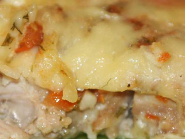Накройте сковороду крышкой и тушите куриное филе с грибами и овощами 7-8 минут.