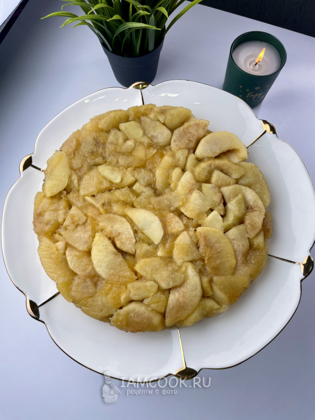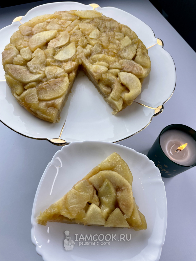 Даем японскому яблочному пирогу остыть и перекладываем его на тарелку.