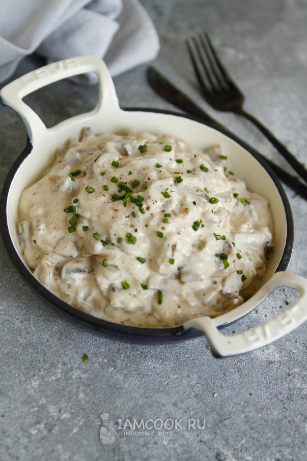 Шампиньоны в сливках с сыром готовы. На гарнир можно отварить гречку, макароны, приготовить картофельное пюре или рис.