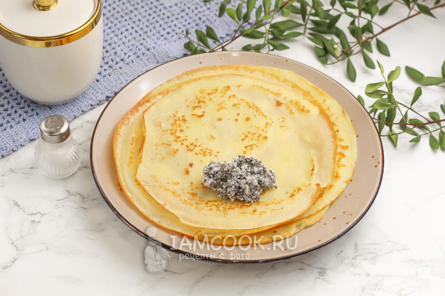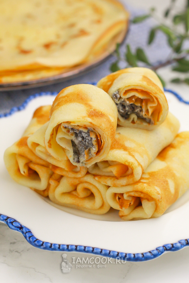 Таким образом начините и остальные блины. Подайте блины с творогом и маком к столу теплыми с любыми выбранными напитками.