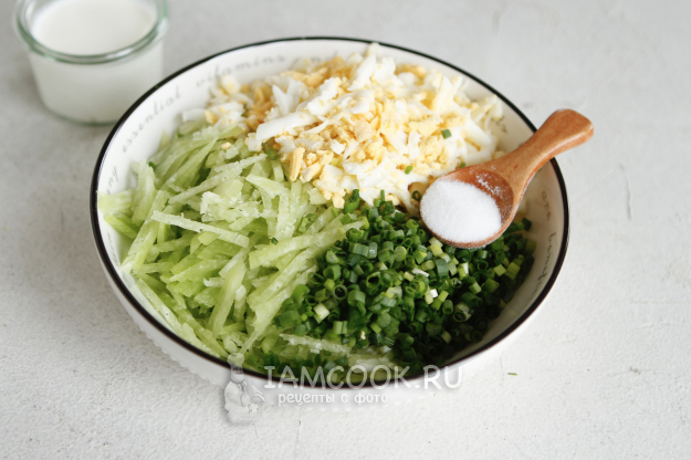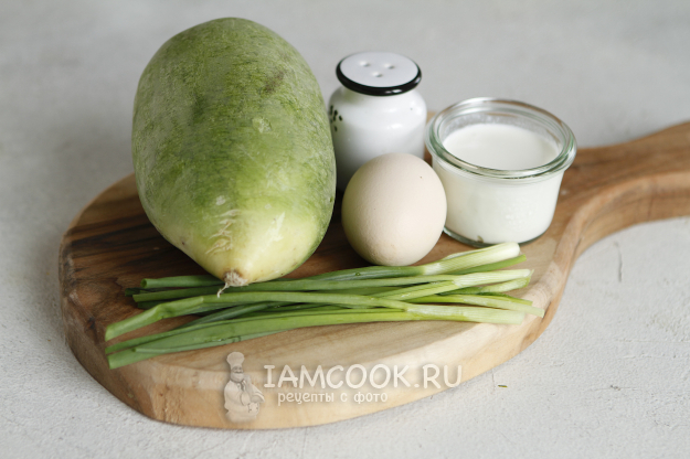 Продукты для приготовления салата из зеленой редьки с яйцом - перед вами.