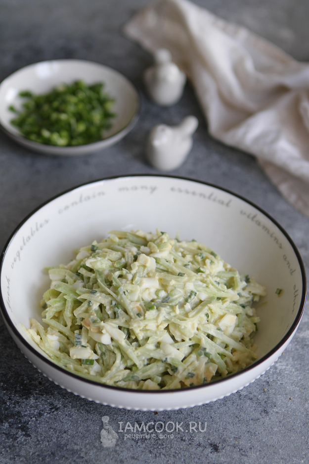Вот такой простой салат из зеленой редьки с яйцом готов. Он получается очень вкусным. Подать салат можно к любым вторым блюдам.