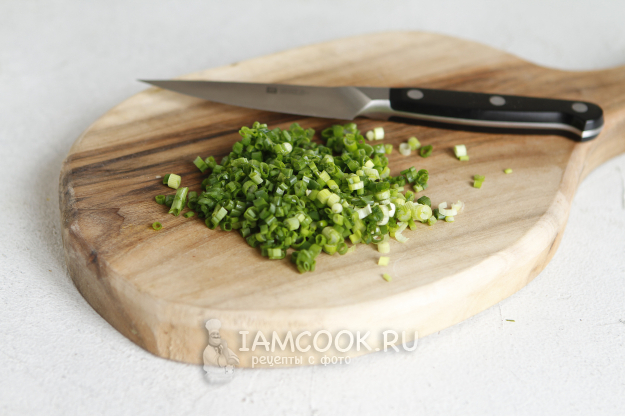 Лук зеленый промойте, тоже хорошо обсушите и мелко нашинкуйте.