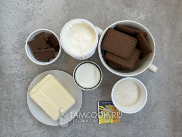 Для приготовления шоколадного чизкейка без выпечки соберите все необходимые ингредиенты по списку.