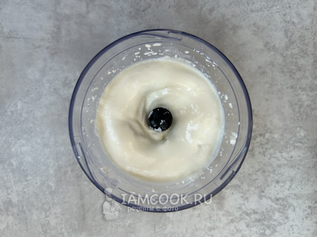Взбейте творожный сыр с сахаром и ванилином до кремообразной консистенции.