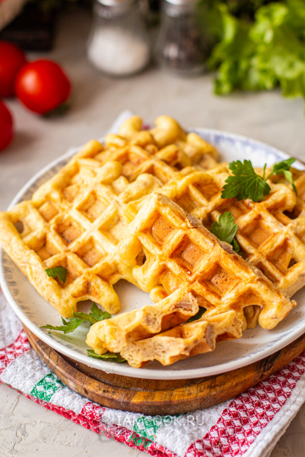 Готовые вафли с рыбой подавайте как в теплом, так и в остывшем виде. Приятного аппетита!!!