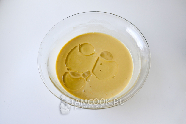 Влейте в тесто растительное масло и еще раз хорошо перемешайте.