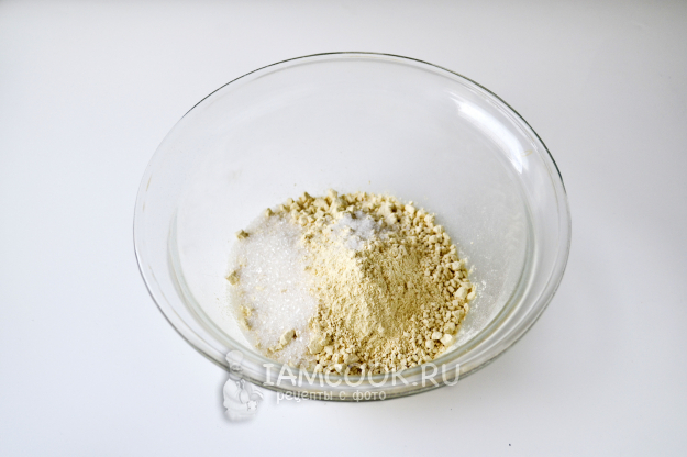 Муку насыпьте в миску, добавьте сахар и соль. Перемешайте.