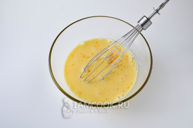 Венчиком взболтайте яйца с молоком до однородной смеси.