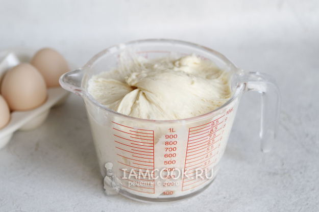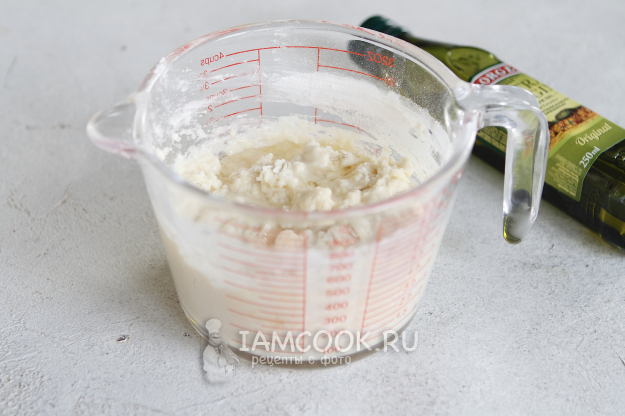 Тесто получится достаточно липким. Если вы будете замешивать его в миске руками, то для удобства рекомендую смазать руки маслом. Тесто получится как очень густая сметана.