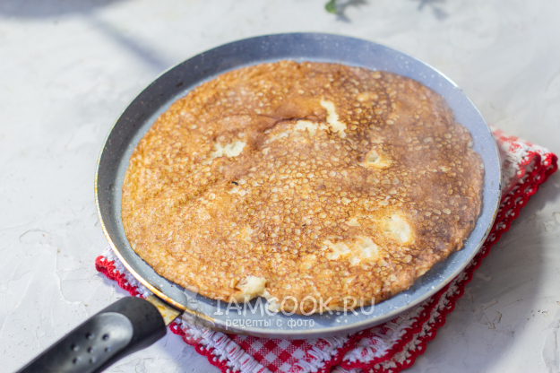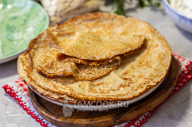Таким образом испеките все блины. Сложите их стопочкой. Из данного количества теста получается 8-10 блинов диаметром 24-26 сантиметров.