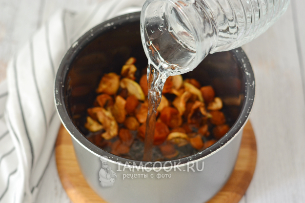 В чашу мультиварки положите сухофрукты и залейте водой.